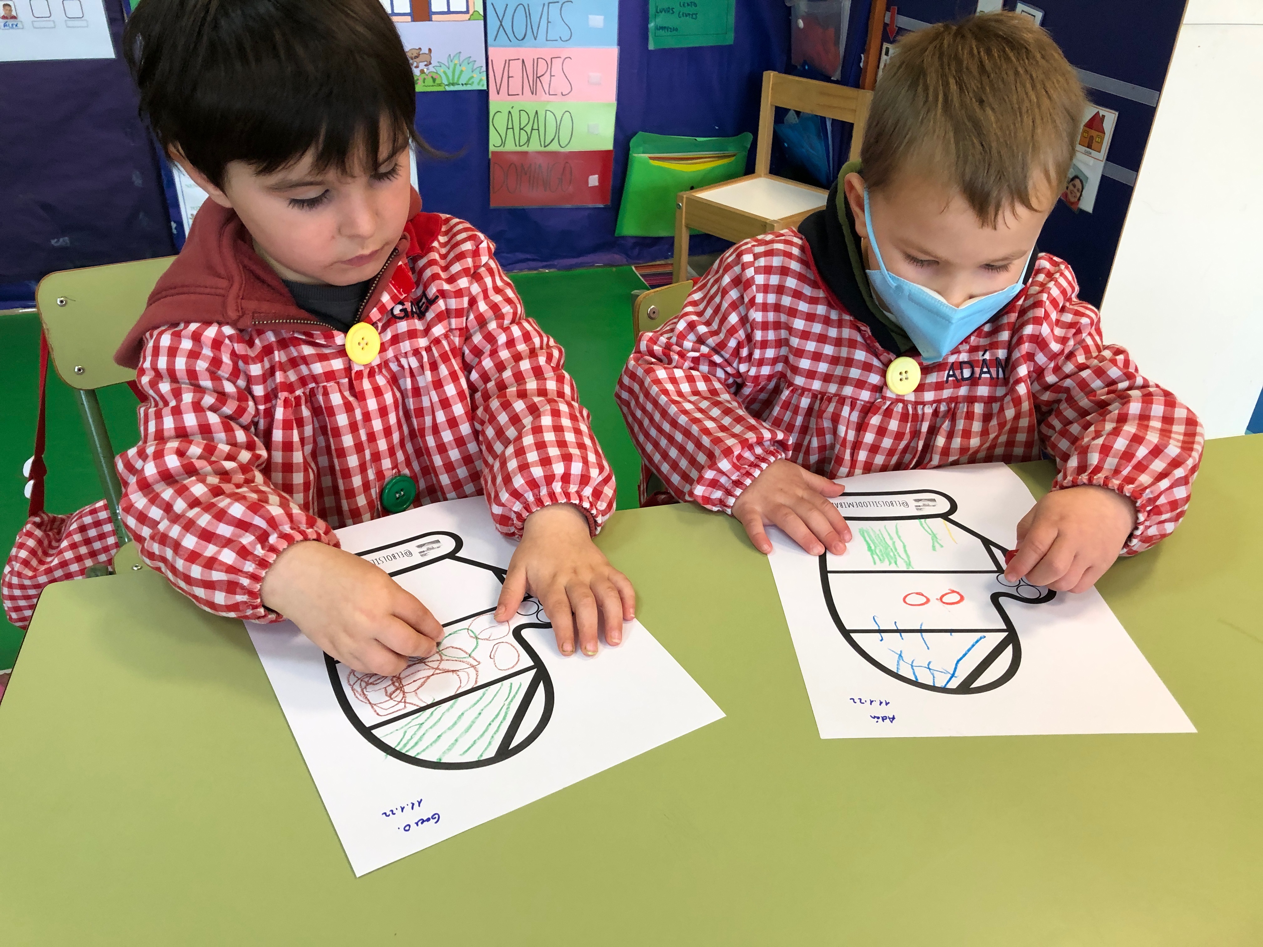 O outro día, aproveitando a temática do inverno, empezamos un taller sobre grafismos. Estamos empezando e costa seguir as indicacións  dadas pero seguro que de aquí a fin de curso quedarán unhas láminas ben bonitas!